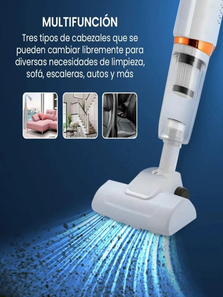 Olvídate de los cables, la suciedad difícil de alcanzar y la limpieza tediosa. Con nuestra Aspiradora Inalámbrica 3 en 1, mantén tu hogar, tu vehículo y cualquier otro espacio libre de polvo, migas, pelos de mascotas y partículas invisibles en cuestión de minutos. Diseñada para ofrecer máxima comodidad y potencia, esta aspiradora combina innovación, tecnología avanzada y un diseño ultraligero para que la limpieza sea más fácil y eficiente que nunca.