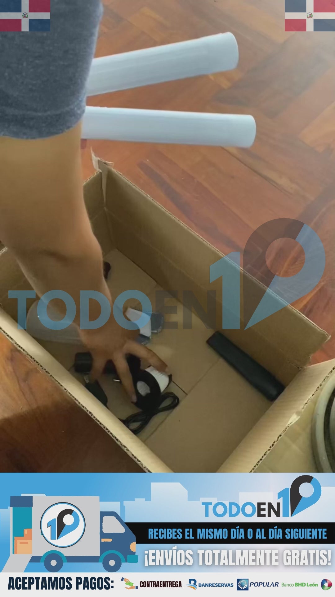 “Excelente atención en Todo en Uno. Me ofrecieron envío gratis en RD y el pedido llegó en menos de 72 horas. Pagué al recibir sin complicaciones.”